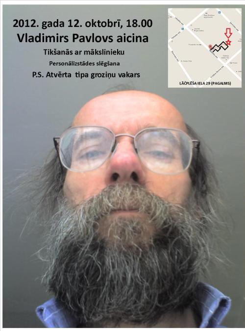 Lieliska iespēja apmeklēt izstādi, satikties ar mākslinieku un citiem mākslas cienītājiem! Pavadīt laiku neformālā gaisotnē. Līdzi jāņem tikai groziņš (ko nu kurš vēlās) un labs garastāvoklis, kā arī kāds draugs. Priekšpēdējā izstādes diena! Varat apskatīt gleznu, kura tiks pasniegta 16. oktobrī kā dāvana Rīgas pilsētai un iedzīvotājiem.